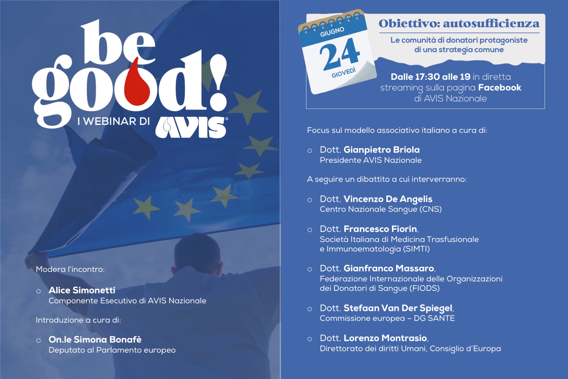 Si intitola “Obiettivo: autosufficienza. Le comunità di donatori protagoniste di una strategia comune” ed è il nuovo webinar del ciclo Be Good organizzato da AVIS Nazionale.